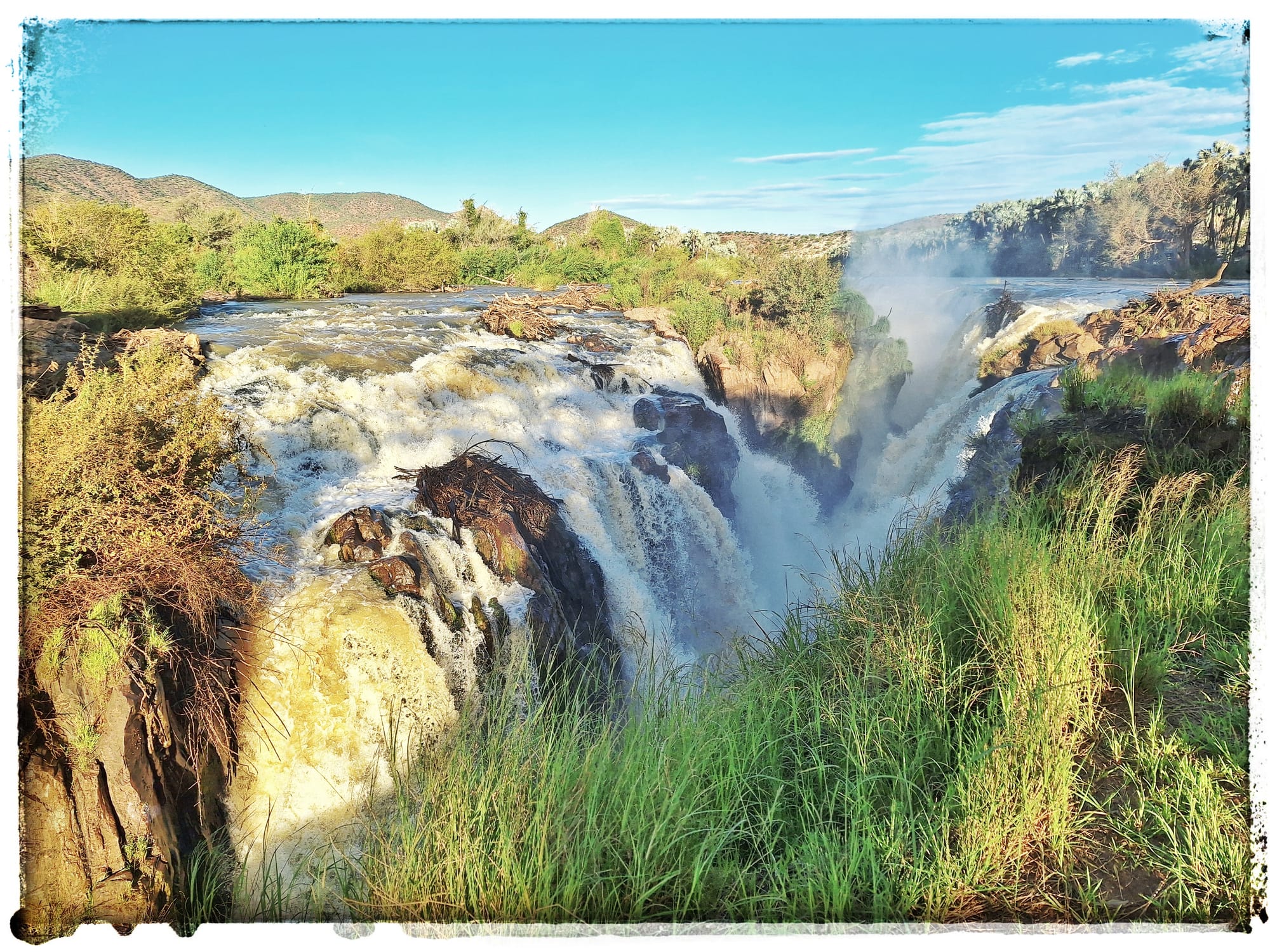 Then on to the spectacular Epupa Falls, a series of cascades plunging into a gorge, surrounded by baobabs and palms. "Epupa" means "falling water" in Himba and it lives up to the name. We should arrive round lunch. Relax the afternoon around the swimming pool.